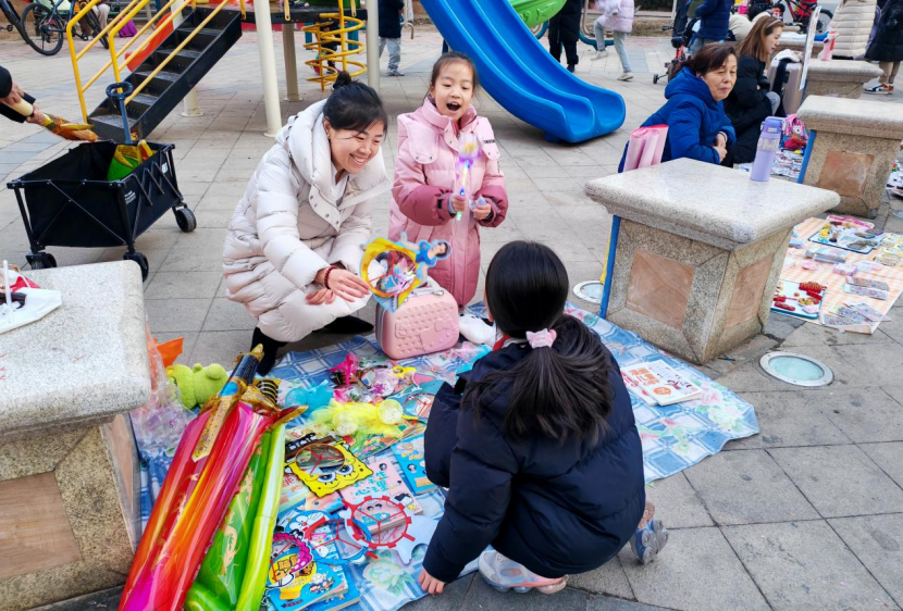 从山东省博物馆出来,同学们一起参与了“校社携手 圆梦同行”旧物换新生活动。既是“小老板”又是“小顾客”,在角色转换之间,让他们深刻体会到珍惜物品、节约资源的重要性,也亲身感受到 “劳动的乐趣”“交易的公平” 以及 “资源的共享”。